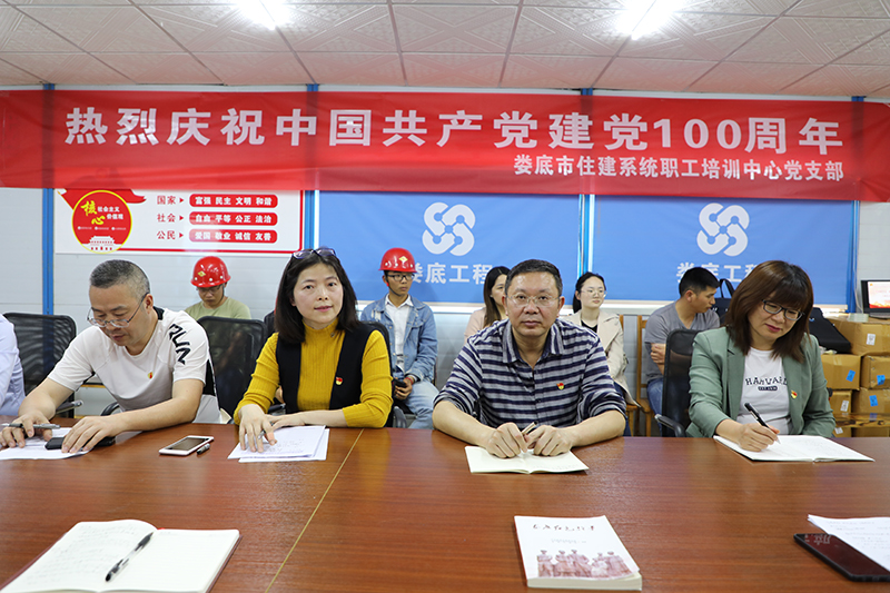 2021年5月25日下午,為慶祝中國共產(chǎn)黨成立100周年,婁底市住建系統(tǒng)培訓(xùn)中心黨支部來到婁底工程建設(shè)有限公司高溪社區(qū)城中村改造工程一期EPC總承包項(xiàng)目部,和項(xiàng)目部臨時(shí)黨支部聯(lián)合開展“憶崢嶸歲月,頌百年華誕”的主題黨日活動。2個(gè)支部共有18名黨員參加,其他項(xiàng)目部現(xiàn)場管理人員和工友代表共有30多人參加活動。